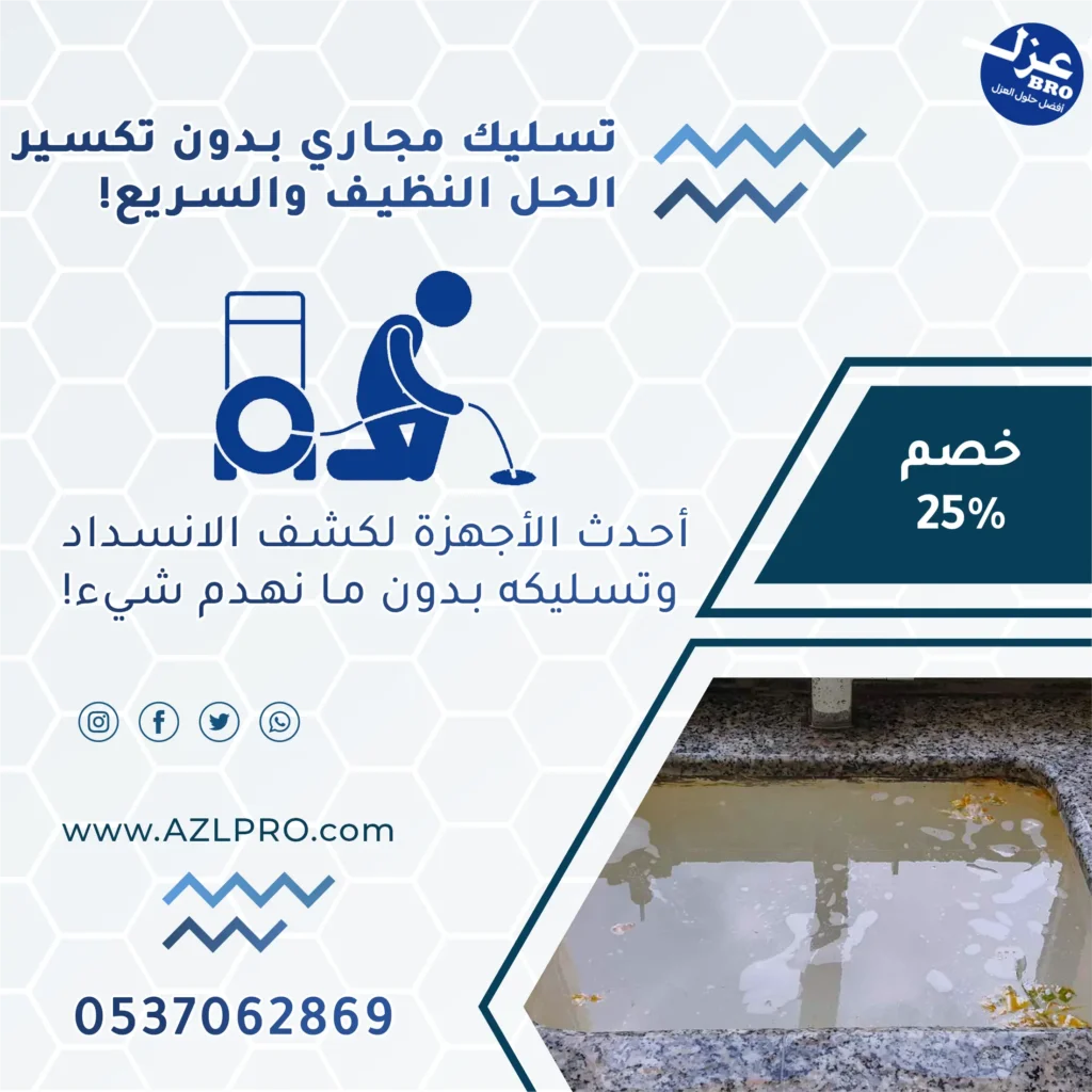 - تسليك بدون تكسير يضمن عدم تعطل منزلك أو عملك.